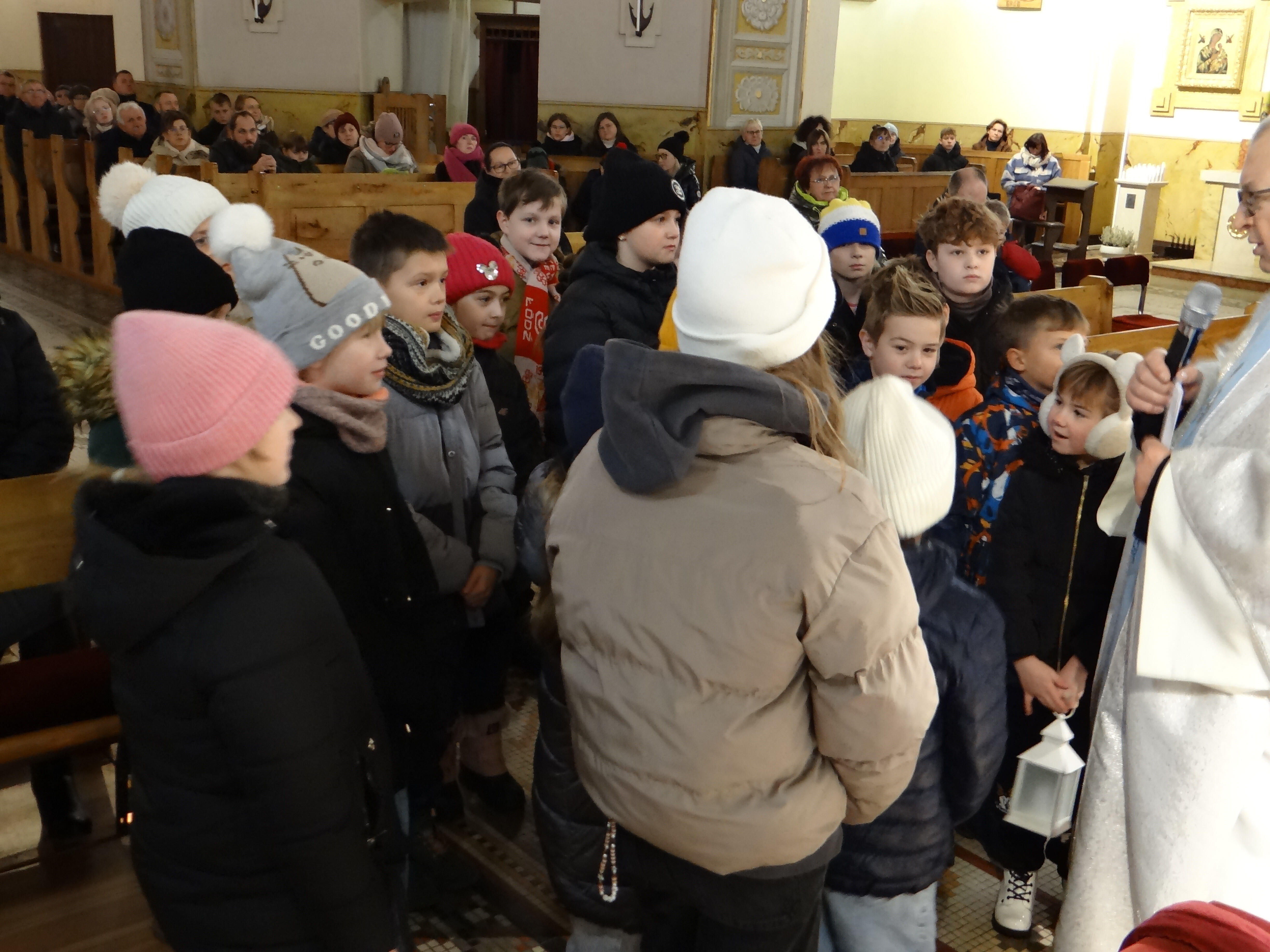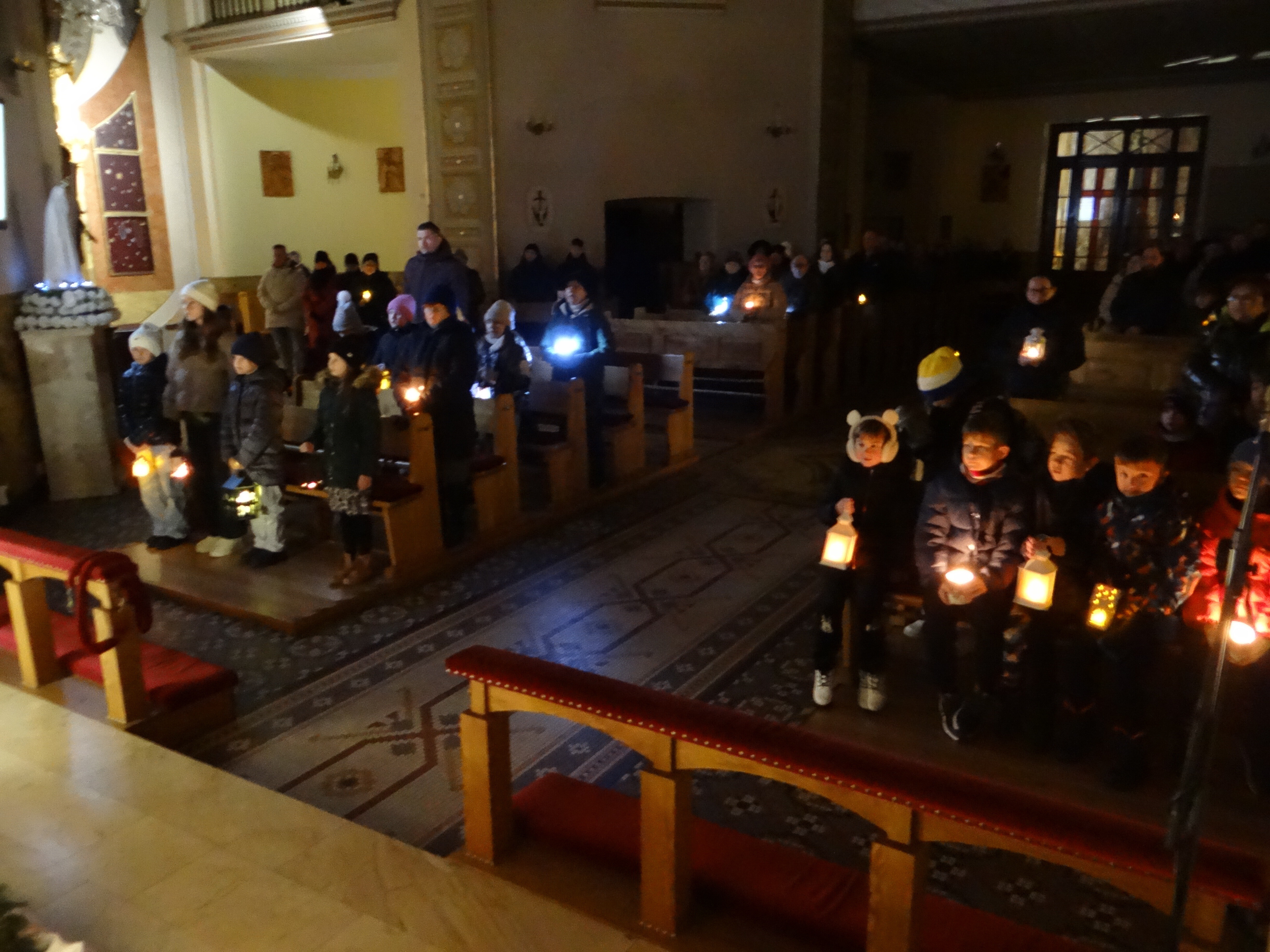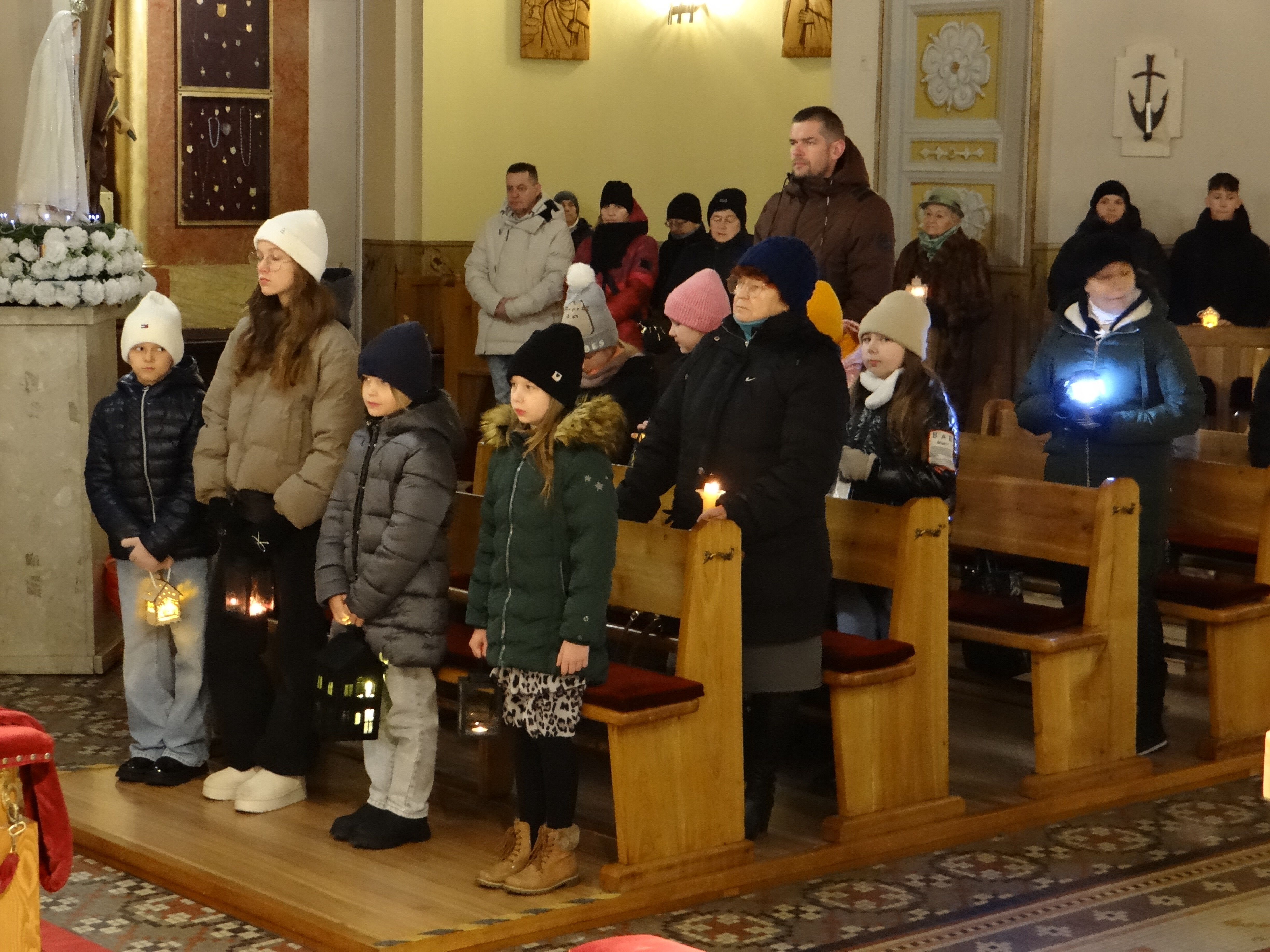 Dziś w naszym kościele została odprawiona pierwsza z dwudziestu trzech Mszy Świętych Roratnich w której uczestniczyło bardzo dużo dzieci . Razem z nimi byli również ich rodzice i opiekunowie oraz nasi parafianie.