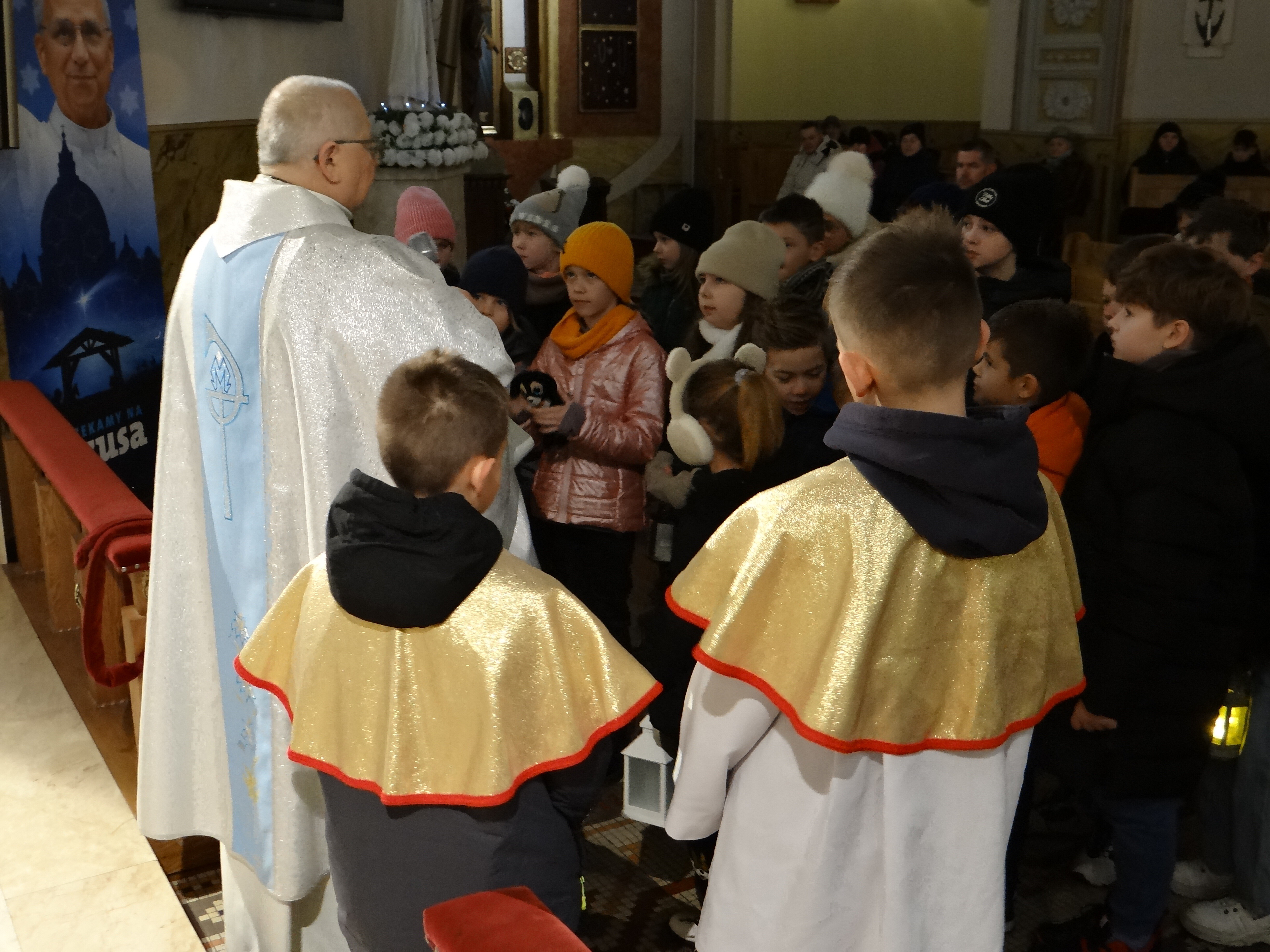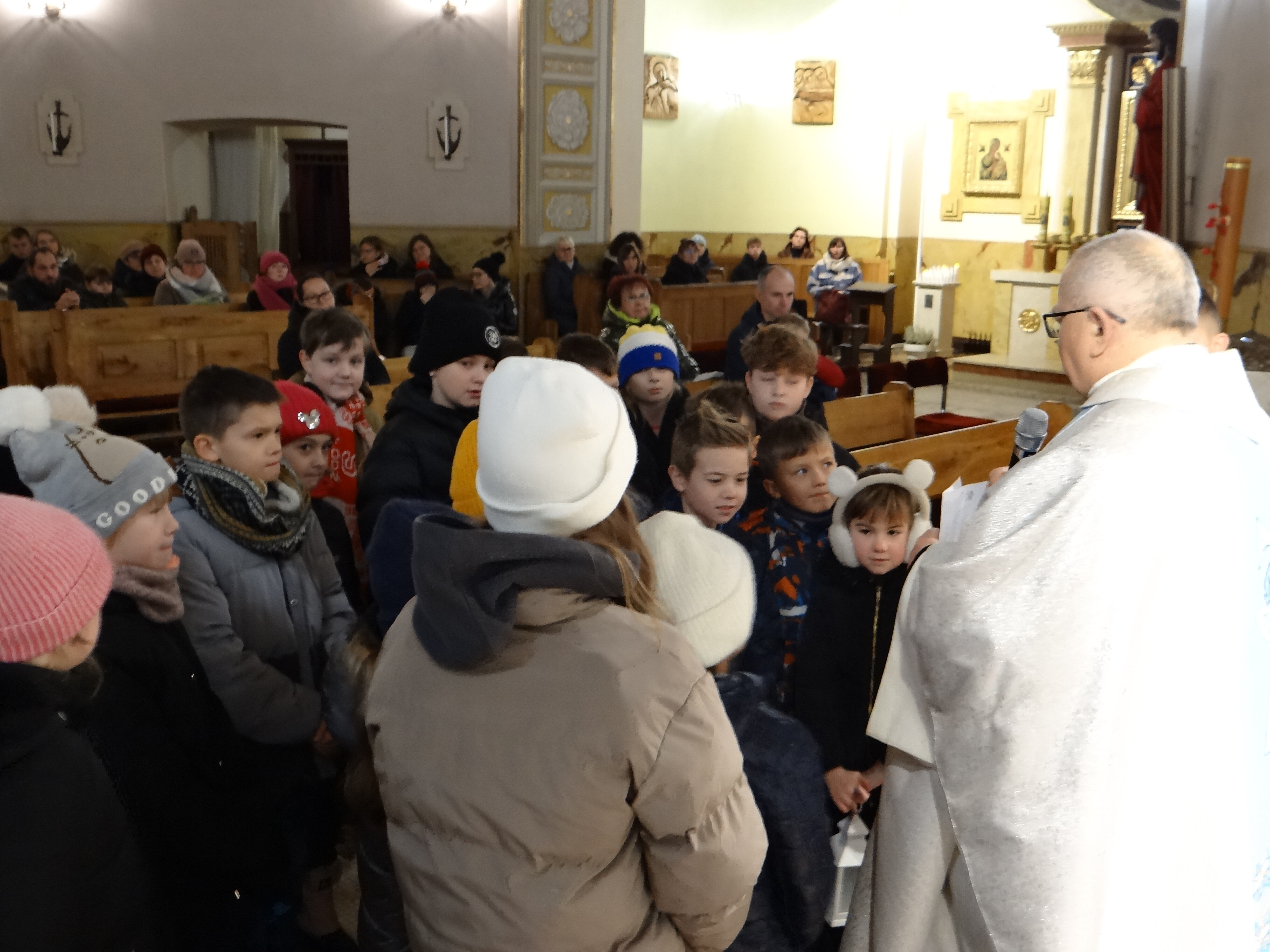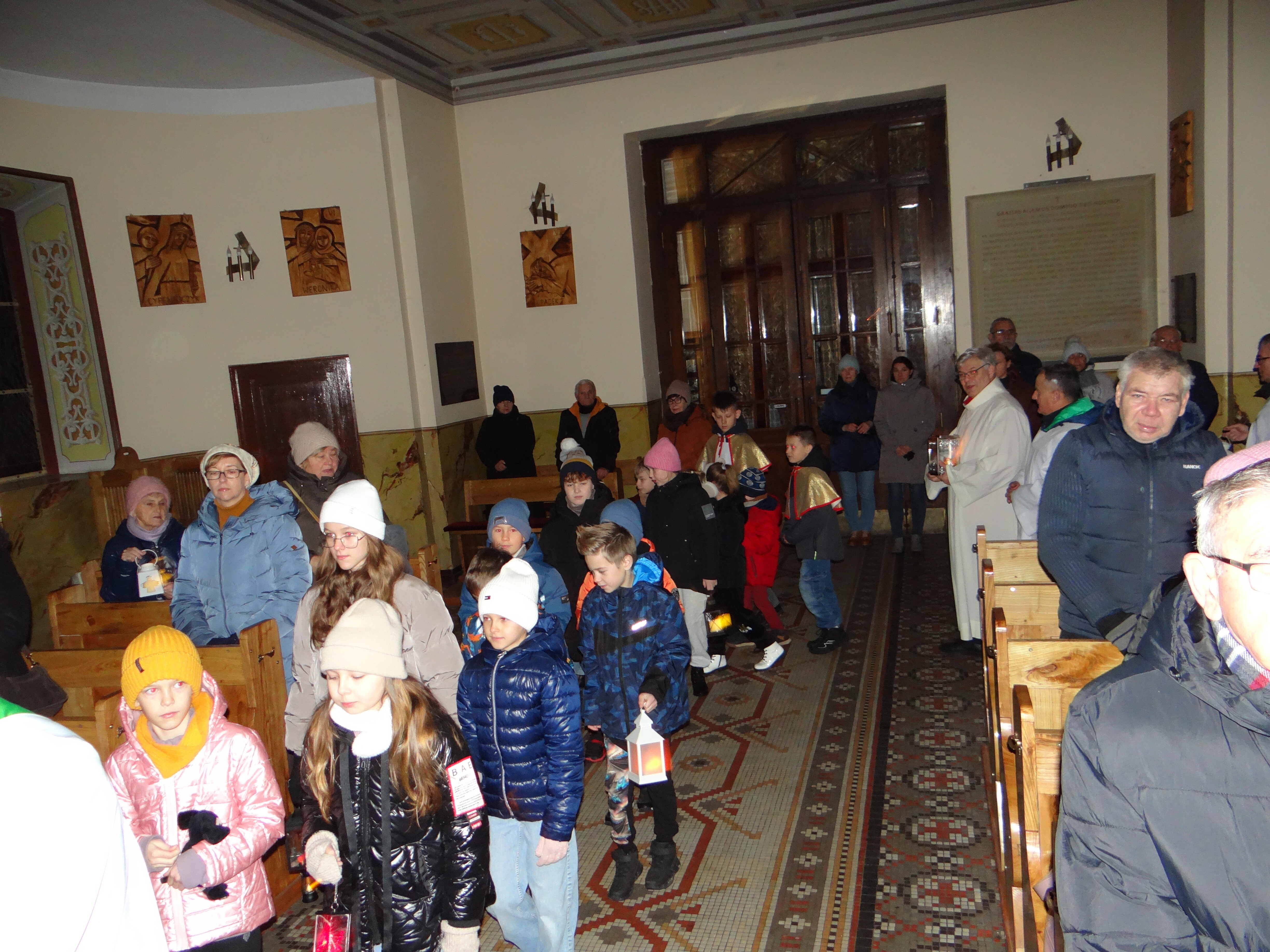 Dziś w naszym kościele została odprawiona pierwsza z dwudziestu trzech Mszy Świętych Roratnich w której uczestniczyło bardzo dużo dzieci . Razem z nimi byli również ich rodzice i opiekunowie oraz nasi parafianie.