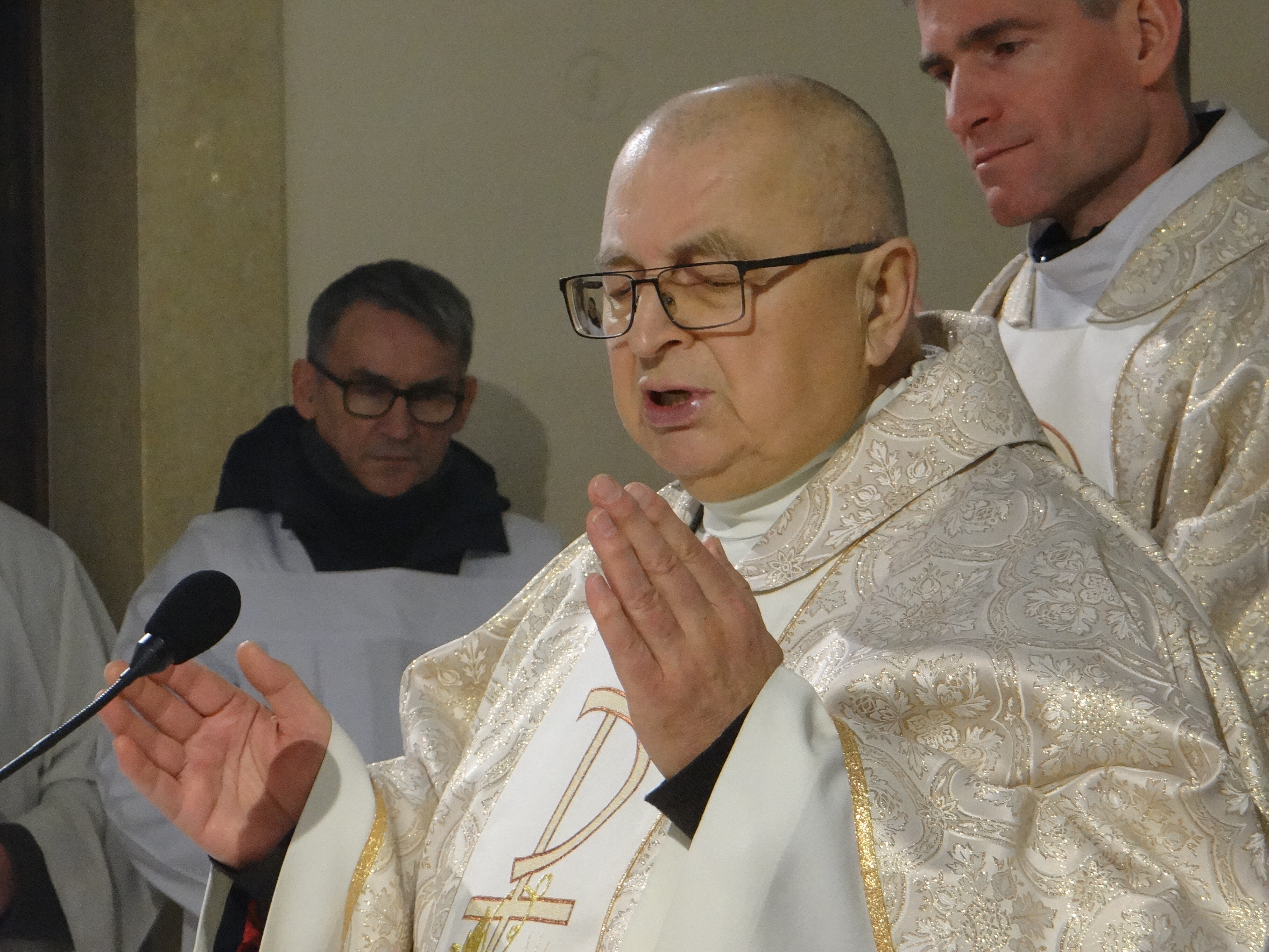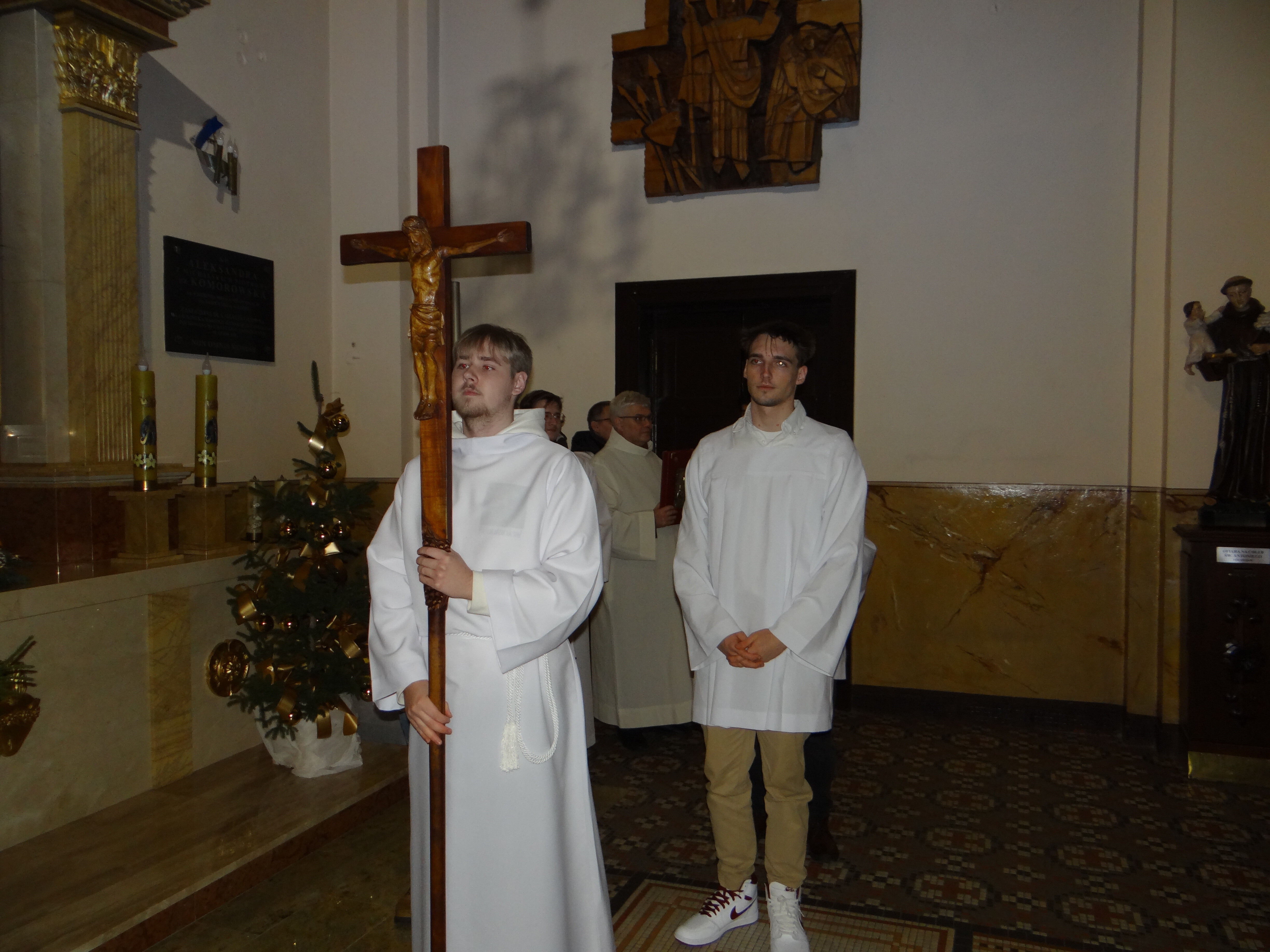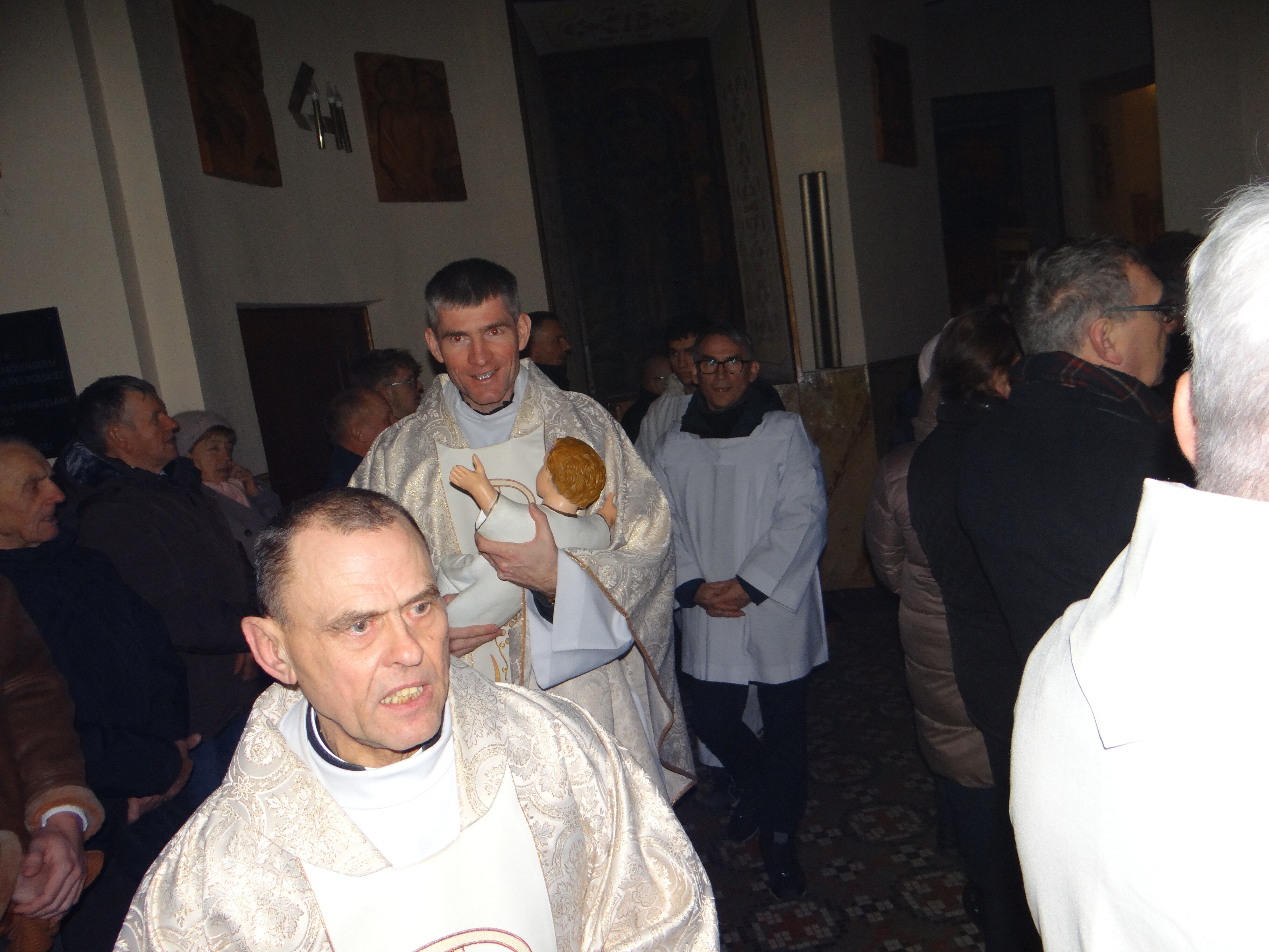 Na zakończenie Mszy Świętej ks. proboszcz Stanisław Banach skierował do zgromadzonych słowa serdecznych podziękowań dla wszystkich, którzy przyczynili się do przygotowania świątecznego wystroju kościoła oraz do godnego przeżycia liturgii. Złożył również wszystkim parafianom i gościom świąteczne życzenia, prosząc, aby łaski płynące od małego Jezusa, narodzonego w ubogiej betlejemskiej stajence, napełniały serca pokojem, radością i nadzieją.