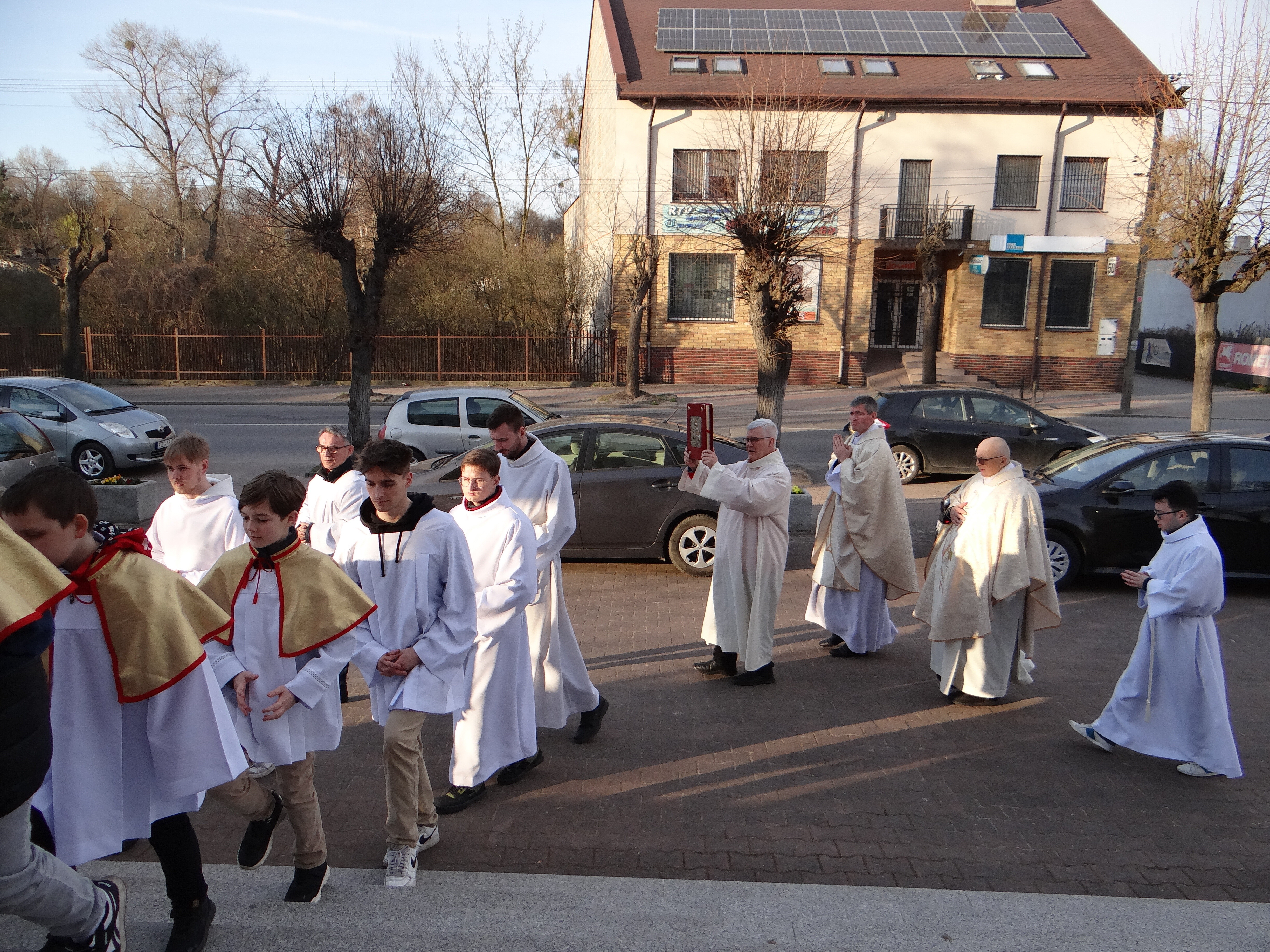 Na zakończenie liturgii Najświętszy Sakrament został przeniesiony do tzw. Ciemnicy, symbolizującej miejsce uwięzienia Jezusa po Ostatniej Wieczerzy. Procesji towarzyszył uroczysty śpiew hymnu „Sław, języku, tajemnicę”, wykonany przez organistę Mirosława Chaberskiego. Po złożeniu Najświętszego Sakramentu ksiądz proboszcz dokonał jego okadzenia.
