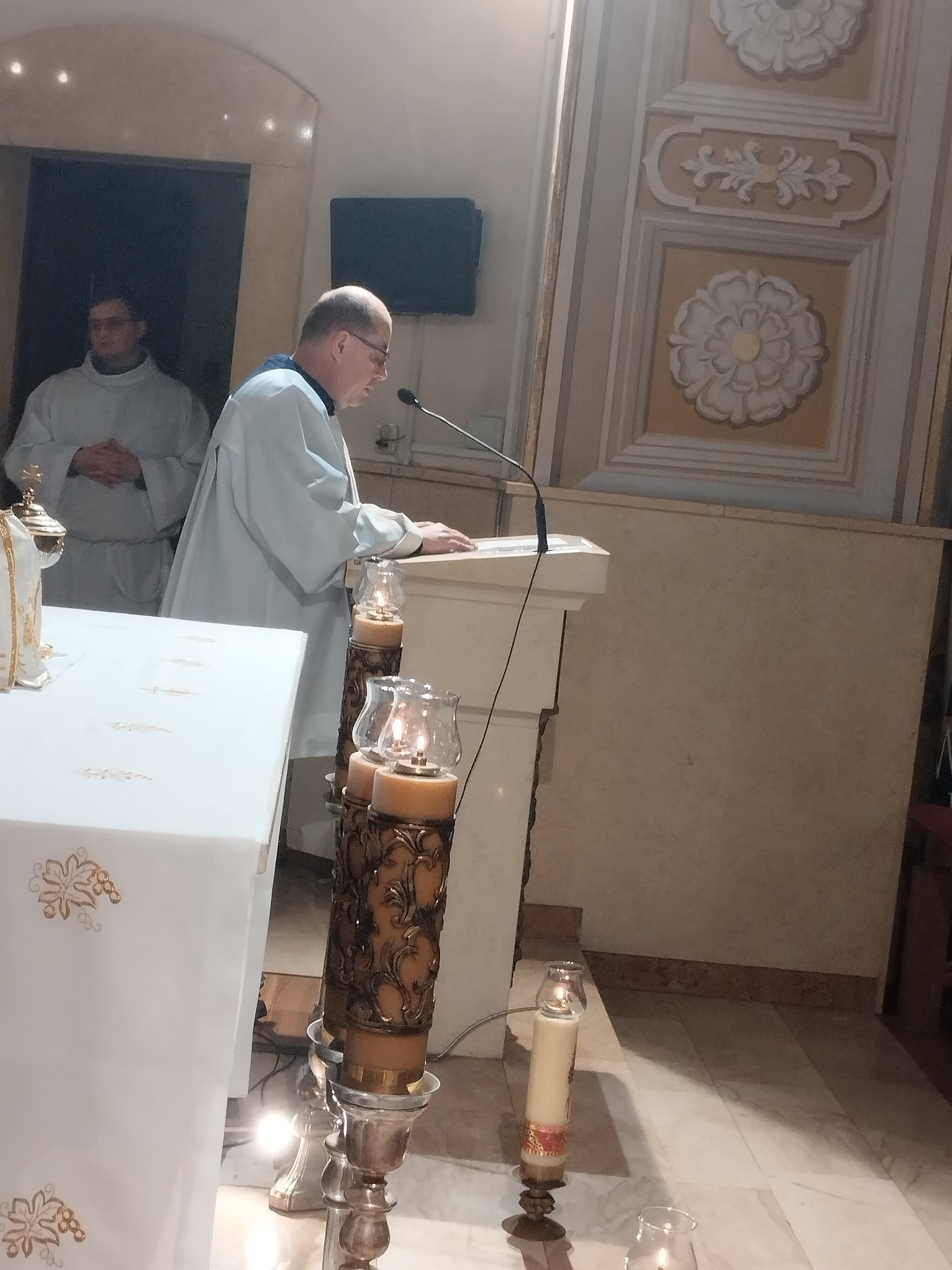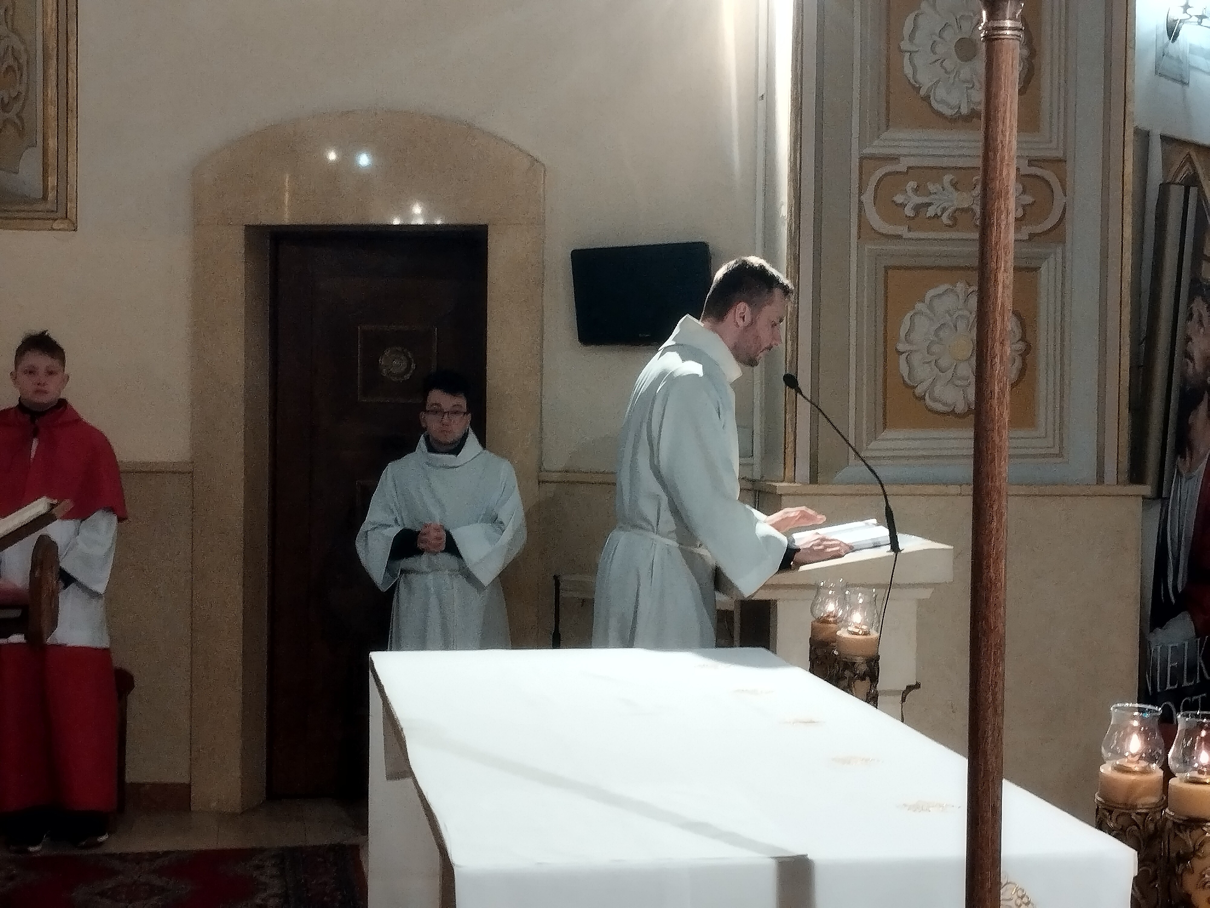 Po liturgii słowa homilię wygłosił ksiądz wikariusz Łukasz Gawrzydek. W swoim rozważaniu skupił się na tajemnicy powołania, podkreślając, że każdy człowiek jest przez Boga wezwany do konkretnej drogi życia. Odwołując się do własnych doświadczeń, wskazał, jak ważna jest wierność temu powołaniu – zarówno w życiu kapłańskim, jak i rodzinnym. Zwrócił uwagę, że prawdziwa miłość wyraża się w codziennej służbie i odpowiedzialności za drugiego człowieka.