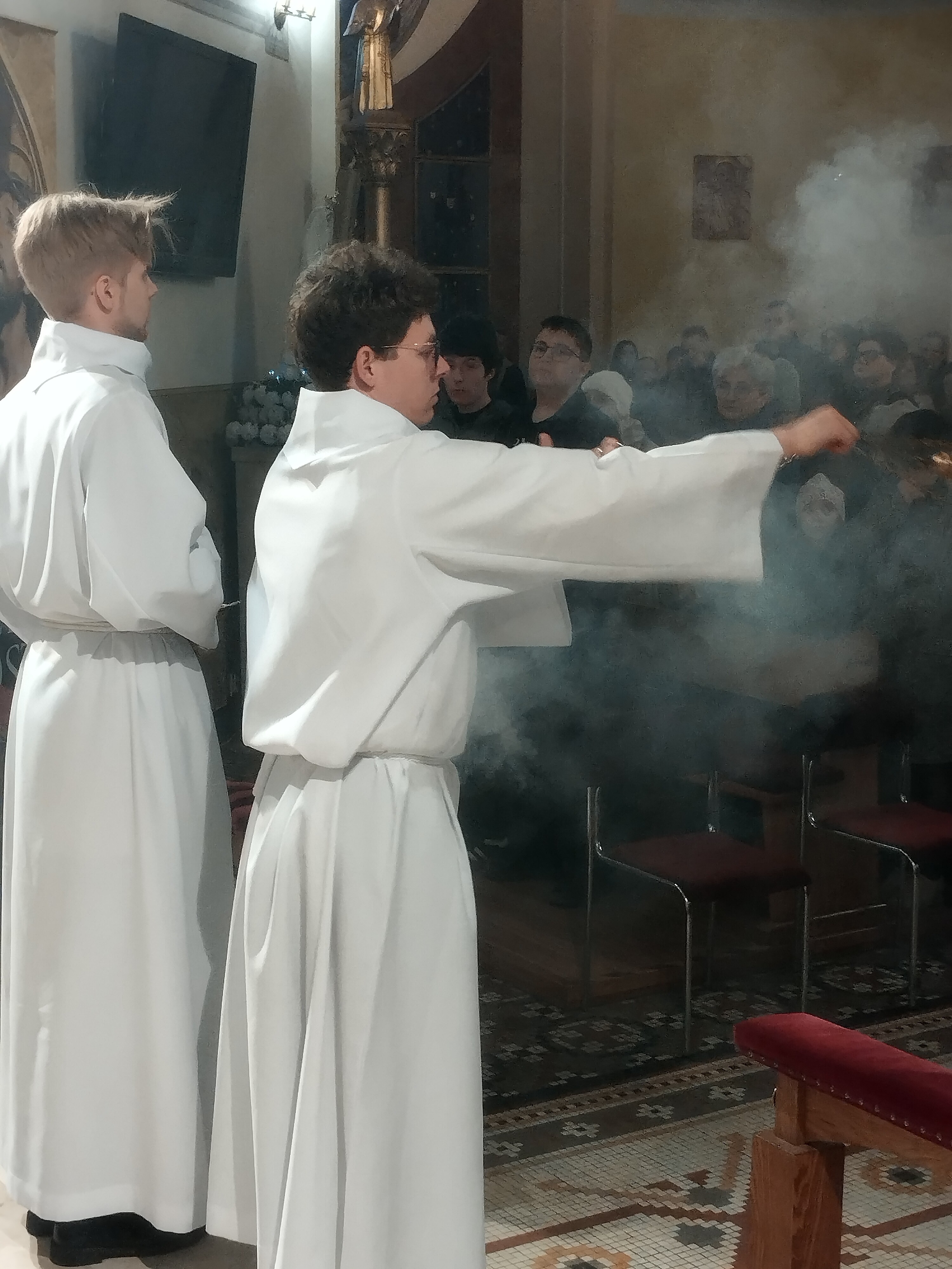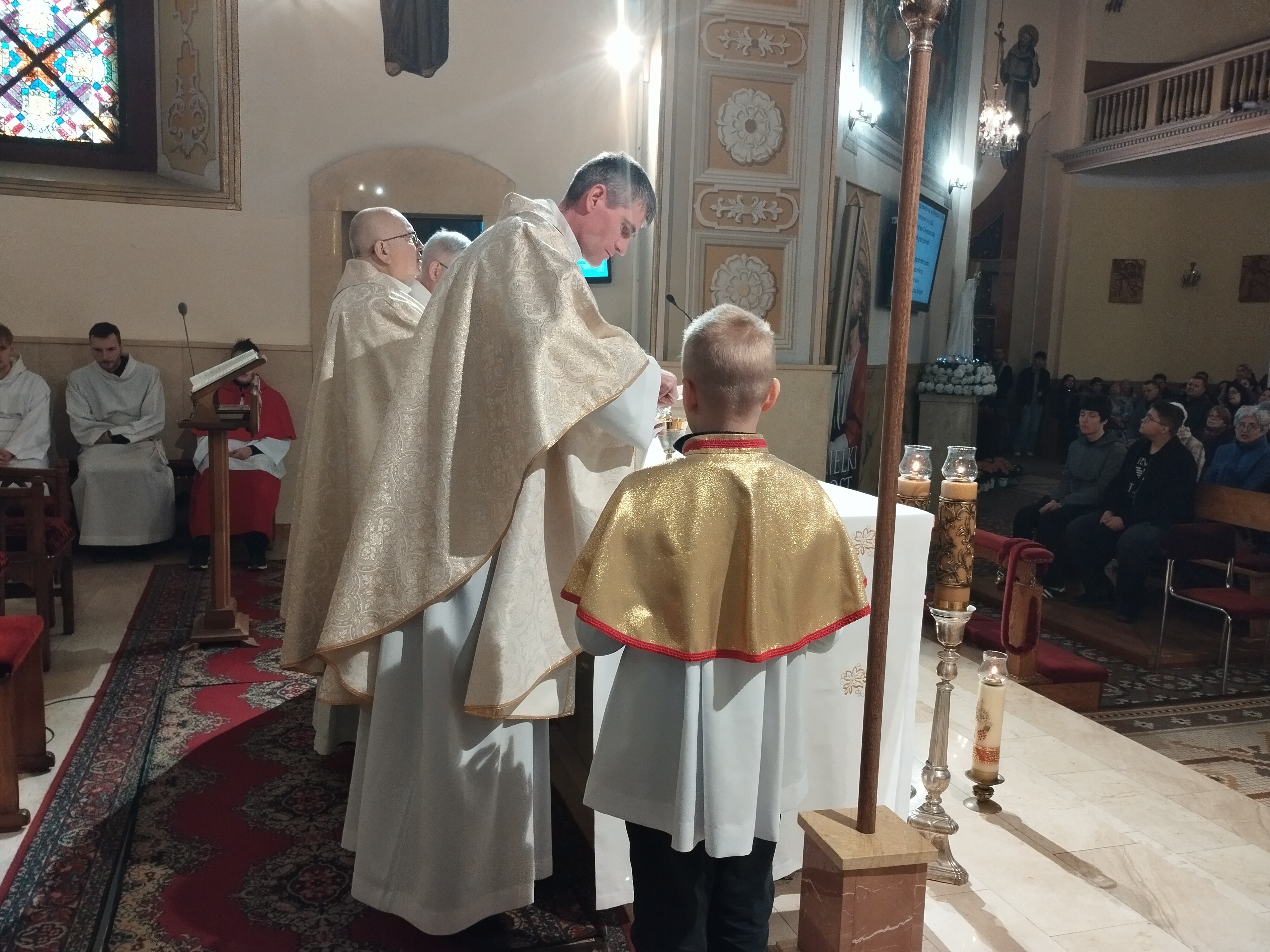 Po Komunii Świętej przedstawiciele ministrantów, pod przewodnictwem Miłosza Gorącego, złożyli kapłanom serdeczne podziękowania za ich posługę i obecność w życiu parafii. Był to piękny gest wdzięczności całej wspólnoty wobec swoich duszpasterzy.